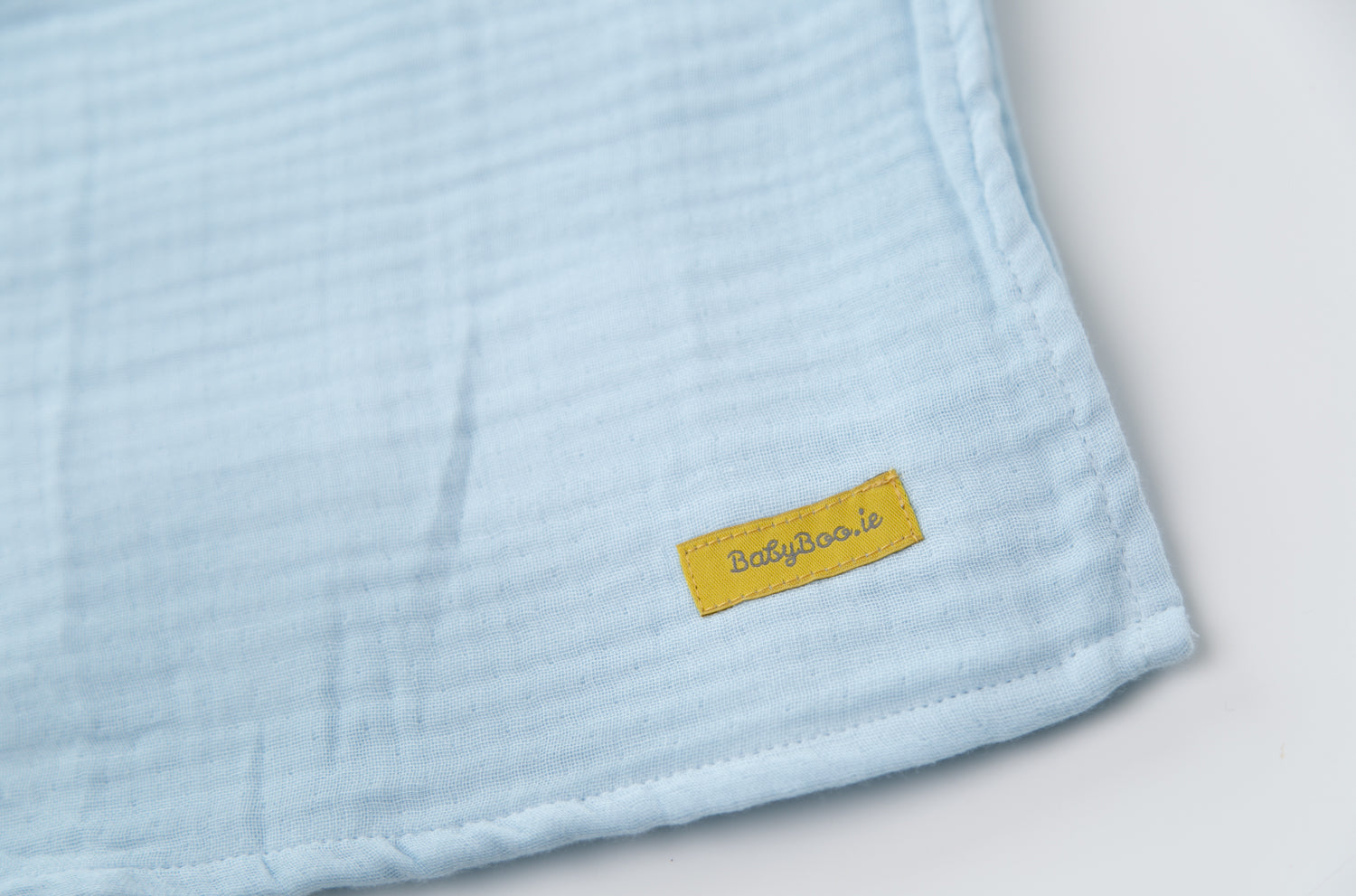 Some of the uses for a muslin include, swaddle blanket, breastfeeding cover, light blanket on holidays or during the summer, fantastic at the beach, for drying after a bath. We used them a lot to cover non cotton surfaces when lying our babies down when out and about, so if a friend had a velvet couch for example, protect the couch and their sensitive skin from a flare up. Fantastic when winding to cover your shoulder, as a liner in the buggy or their crib to save sheets and lastly the classic use, to clean spillages or spit up.