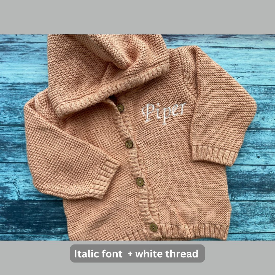 Popular thread colours for this cardigan are grey and gold – if you do not select a colour when ordering we will choose one of these colours for you.