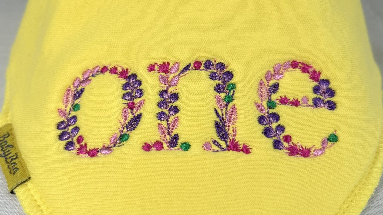 Floral "ONE" birthday organic cotton Dribbleboo bandana bib
