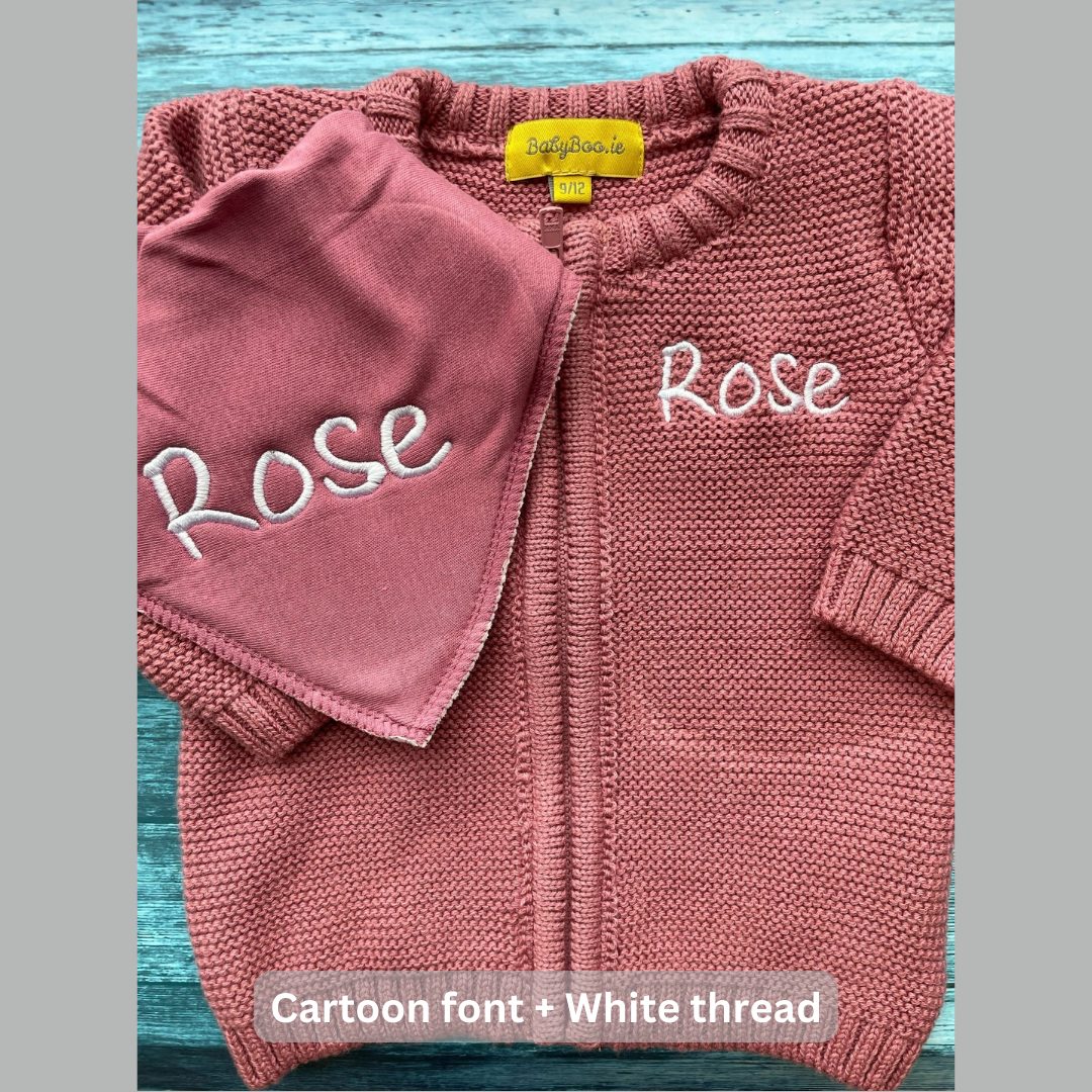 Popular thread colours for this cardigan are white and gold - if you do not select a colour when ordering we will choose one of these colours for you